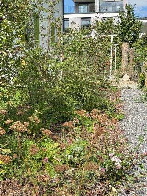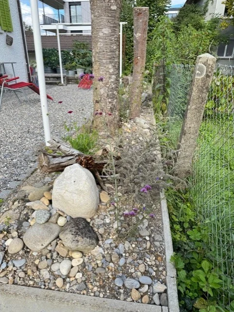 Freude am neuen Naturgarten! Ein erster Gartenapéro wurde am Donnerstag, 04. September 2025 in Bad Zurzach gefeiert. Im vorgestellten Garten wurde neben der Wildholzhecke auch eine Ruderalfläche und ein Nutz- und Naschgarten angelegt.